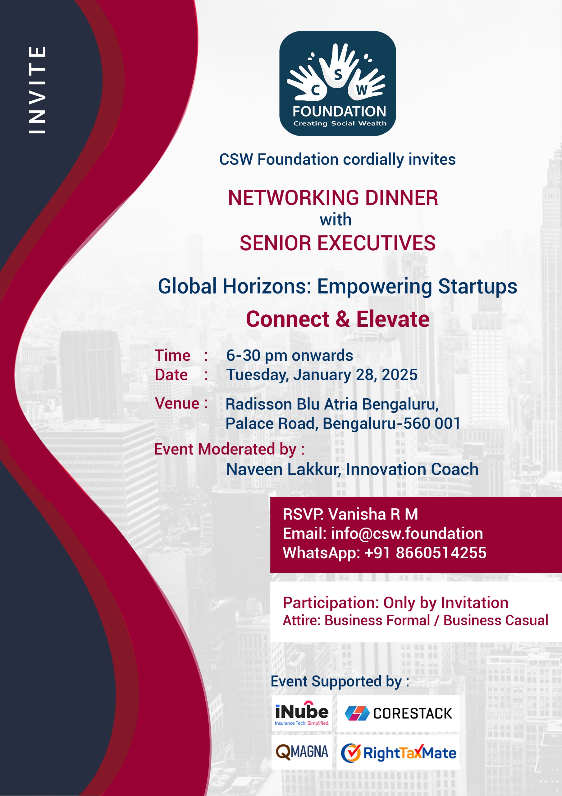 Welcome to CSW Foundation, where innovation meets opportunity, and visionary minds come together to shape the future. Rooted in a mission to empower the next generation of entrepreneurs and innovators, we are a dedicated global hub to creating a vibrant platform for start-ups, co-creators, and forward-thinking individuals.